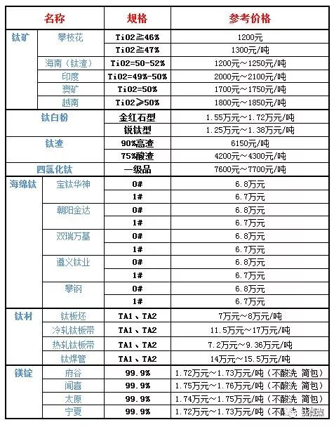 1月22日钛市场价格